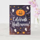 Celebre a temporada assustadora com estilo com este encantador cartão de Halloween! Com uma mistura divertida de elementos de design retrô e moderno — abóboras brilhantes, fantasmas amigáveis e brilhos dourados — este cartão dobrado 5x7 captura perfeitamente o espírito aconchegante e festivo do Halloween. Ideal para convites de festa, saudações familiares ou para enviar uma mensagem assustadora calorosa para amigos. O interior está em branco, dando espaço para adicionar seu toque pessoal.