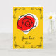 Desenho caprichoso feito em estilo retrô com uma rosa vermelha como lembrança de uma viagem à Espanha em um fundo amarelo dourado. Um design personalizável em preto, branco, vermelho e amarelo para você personalizar com seu próprio texto, imagens e ideias. Uma imagem de arte digital original.