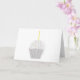 Um cartão de aniversário com um cupcake com glacé de baunilha e borrachas-arco-íris. O dentro é vazio para que você possa escrever sua própria mensagem pessoal.