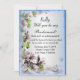 Lindo floral roxo com uma borboleta e fundo azul. Planejando um casamento? Você precisa de suas amigas para segurar sua mão, ajudá-la a organizar e fazer você parecer perfeita no seu dia especial. Fazer o pedido é fácil com este cartão de dama de honor. Personalize o cartão alterando o texto nos campos fornecidos na frente e no verso. Você pode alterar o estilo da fonte, tamanho e cor, bem como o tipo e estilo de papel.