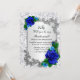 Lindas rosas azuis e moldura com padrão de folha prateada. Planejando um casamento? Você precisa de seus amigos para segurar sua mão, ajudá-la a organizar e fazer você ficar perfeita no seu dia especial. Pedir a alguém para ser sua dama de honra é fácil com este cartão. Personalize o cartão alterando o texto nos campos fornecidos na frente e no verso. Você pode alterar o estilo da fonte, tamanho e cor, bem como o tipo e estilo de papel.