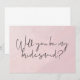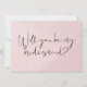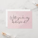 Cartão cor-de-rosa com letra em aquarela "Você será minha dama de honra?"