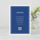 Um cartão de Data de Salvamento de casamento minimalista elegante com letra branca em um fundo azul naval. Adicione seu próprio código QR.
