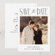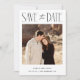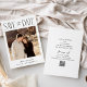 Um cartão de data de salvamento de casamento moderno, mas simples, apresentando sua foto favorita na frente. Adicione mais informações, além de um código QR do site do casamento no verso.
