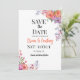 Celebre seu dia especial com este elegante cartão de "save the date" floral, apresentando flores laranja e roxas em aquarela. Perfeito para anúncios de casamento em qualquer estação, este modelo personalizável de "save the date" de casamento foi projetado para impressionar seus convidados com seu visual romântico, moderno e atemporal.
