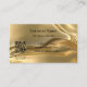 Fundo metálico de ouro fluido, texto preto Na frente: Adicione desconto. Voltar: Personalize e adicione seu nome, endereço, número de telefone, email, endereço de site, código qr ao site ou conta de mídia social.