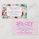 Cartão de visita temático da coruja colorida com vale/disconto na parte traseira - aperfeiçoe para uma padaria, o café, o boutique ou a outra loja de varejo. Personalize com seu próprio texto para um cartão perfeitamente personalizado que agarre a atenção dos seus clientes! {{Para cores ou a ajuda específica com disposição, me deixe cair uma linha em mel@creativemel.com - eu estarei feliz ajudar!}}