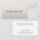 Cartão de desconto minimamente personalizável com fundo falso prateado e fontes negrito. Este cartão é uma boa ferramenta de marketing para recompensá-lo melhor ou novo clientes.