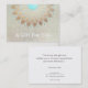 Esta ilustração exótica de flor de lótus artístico tem uma elegante fusão de vintage, moderna e nova era. O medalhão de rosetas, inspirado em Mandala, é perfeitamente acentuado pelo fundo digital de folha de papel bege cinzento. Centro azul turquesa. Textura de linho suave de cor bege suave.*Observe que as superfícies de folha de ouro, escova e linho são imagens digitais - não o real. Um cartão de visita único e versátil ideal para aqueles que curam artes, designers, beleza, moda ou bens e serviços de consumo baseados na natureza.