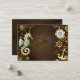 Fundo de madeira castanho com fundo marinho, cordilheira mecânica, volante antigo, âncora de ouro e diversas engrenagens de ouro e latão. Estilo Steampunk.