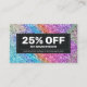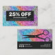 Aumente a marca do seu salão e aumente o noivado do cliente com este atraente cartão de visita e conjunto de cupom! O vibrante design brilhante do arco-íris é memorável e na moda, e os 25% do cupom dão aos clientes um incentivo fantástico para marcar sua próxima consulta. Personalize com seus detalhes e faça uma impressão duradoura!