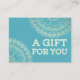 Yoga Malhação Studio / Instrutor de Meditação / Treinador Pessoal / Treinador de Vida / Healer / Mestre Reiki / Cartão de Certificado de Presente para Terapia de Massagem - Símbolos Florais de Mandala em Azul Cristal / Azul Verde Teal - Modelo de Cartão Azul Moderno.