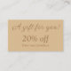 Este cartão de desconto apresenta uma sofisticada paleta de cor castanha, exuberando elegância e profissionalismo.