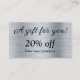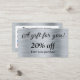 Cartão de desconto elegante com design prata. Você pode personalizá-lo ao seu gosto e mudar o que quiser.