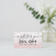 Cartão de desconto profissional de mármore branco, Rosa de cabelos de cabelos de maquilhagem com elegante e moderno confete brilhante de ouro de rosa e gradiente rosa de ouro de glitter ombre com textura de mármore branco e uma tipografia moderna, adicione suas mídias sociais.
