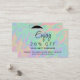 Cartão De Desconto Script de Pastel Holográfico Modern Faux | Seu log