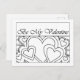 Este lindo desenho de linha preto e branco está pronto para ser colorido, para uma maneira única de dizer "Eu te amo". Este cartão apresenta a frase "Seja meu valentão" e uma variedade de desenhos de coração que acompanham.