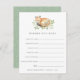 Deixem os chás de fraldas compartilharem seus desejos de bebê com esses cartões doces que contêm uma lista de avisos e espaço para os convidados assinarem seus nomes. Coloque uma pilha na entrada do evento, passe-as ou deixe uma em cada lugar. Faz uma manga divertida para a mamãe ser, também, quando compilada em uma caixa bonito ou um encadernador. Design apresenta uma doce raposa aquosa de bebê aninhada numa cama de folhas e folhagem de eucalipto verde macio. Combina com os nossos convites para o chá de bebê Woodland Fox.