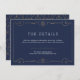Elegância vintage com desenho de moldura ornamentada em espiral em cor dourada sobre fundo azul-marinho editável. Padrão damasco com desenho de monograma no verso, moderno, elegante e sofisticado, perfeito para casamento vintage, casamento art déco durante todo o ano. Cor do fundo editável para combinar com as cores do tema do seu casamento. Personalize com qualquer informação que você gostaria que seus convidados soubessem.