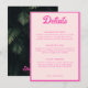 Compartilhe os detalhes do seu evento com estilo usando esses cartões de detalhes de Bat Mitzvah tropicais rosa neon. O design apresenta folhas de palmeira verdes e texto personalizado rosa para compartilhar os detalhes do seu evento. Entre no Zazzle Design Tool para fazer ajustes adicionais no texto.