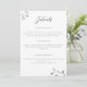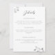 Folhas de eucalipto, desenhadas à mão a lápis grafite, sobrepostas em ouro branco, adornam este cartão de detalhes de convite de casamento simples, mas sofisticado, elegante e tradicional, mas também moderno e chic. A arte original a lápis lhe dá uma aparência única e original, elevando este clássico a uma interpretação moderna e refrescante de um design de convite de casamento tradicional.