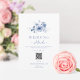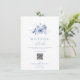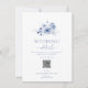 Compartilhe todas as informações importantes sobre o seu dia especial com este elegante cartão de detalhes de casamento. Com delicadas flores de aquarela azuis desbotadas e uma mistura de tipografia clássica e de caligrafia, este cartão é elegante e funcional. Inclui espaço para horários de cerimônia, informações do local, acomodações e um código QR ou site para fácil acesso dos convidados. Uma bela adição a qualquer conjunto de casamento com tema azul romântico.