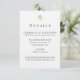 Um cartão de detalhes de casamento refinado e arejado com a cabeça de cavalo e o brasão de louro. Perfeito para compartilhar informações sobre a cerimônia, acomodação, vestuário e site sem sobrecarregar o design. Espaçado de forma pensada, limpo e fácil de personalizar. Ideal para casamentos equestres, locais campestres, celebrações rústicas elegantes e conjuntos de noiva clássicos