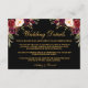 Cartão de Inserção de Detalhes de Casamento Floral Borgonha com Aquarela, Preto e Dourado