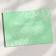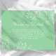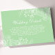 Complete seus convites de casamento com este cartão de detalhes de casamento floral neo mint moderno. Este cartão de inclusão elegante apresenta um fundo neo mint refrescante adornado com ilustrações florais brancas delicadas, perfeito para transmitir informações essenciais, como direções, acomodações e detalhes de RSVP para seus convidados. O design minimalista e a escrita elegante adicionam um toque de sofisticação moderna ao conjunto de papelaria de casamento. Personalize com seus detalhes específicos para garantir que seus convidados estejam bem informados e impressionados com seu planejamento atencioso. Este cartão versátil se adequa a uma variedade de temas de casamento, de contemporâneo a romântico.