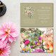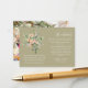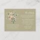 Adicione um toque atencioso e na moda à sua suíte de casamento com este cartão verde sábio de detalhes florais. A frente apresenta um buquê macio de flores de pêssego e creme, perfeito para incluir sua recepção, acomodações, código de vestimenta ou link de site. O verso mostra um jardim de aquarelas vibrante, de flores de primavera, trazendo um novo e romântico à sua celebração.