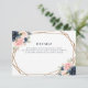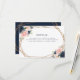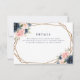 Uma maravilhosa mistura de flores aquáticas e uma moldura geométrica com texto azul marinho. Você pode usar este cartão para obter informações adicionais sobre o casamento, como acomodações e direções.