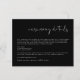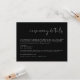 Este cartão de detalhes de casamento apresenta uma fonte manuscrita arrojada e um design minimalista moderno. É a adição perfeita para o seu conjunto de convites de casamento limpo e contemporâneo. Você também pode usá-lo para listar acomodações ou detalhes sobre qualquer evento; chá de bebê, chá de noiva, festa de aposentadoria, etc. Edite a *maioria* das palavras para atender às suas necessidades.