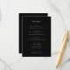 Anuncie todos os detalhes importantes do seu dia de casamento com este cartão de inclusão preto e branco elegante e moderno. O design minimalista apresenta uma tipografia clara, facilitando que os convidados encontrem todas as informações essenciais sobre o recebimento, acomodação e programação. Este design sofisticado adiciona um toque de classe à papelaria do seu casamento, garantindo que todos os convidados estejam bem informados. Perfeito para casais que buscam uma maneira elegante e estilosa de compartilhar os detalhes logísticos do casamento. Impressione seus convidados com este design detalhado, porém discreto.