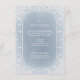 Elegante desenho de moldura ornamentada vintage em creme sobre fundo azul empoeirado suave, romântico e sofisticado, ótimos cartões de inserção de casamento para casamento vintage, casamento romântico e casamento de inverno. Veja todas as peças correspondentes na coleção.