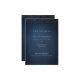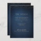 Glitter dourado falso em fundo azul marinho escuro e monograma sofisticado do casal no verso, Simples e elegante. Ótimo cartão de detalhes de casamento para casamento clássico moderno e casamento formal.