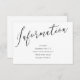Cartão de inserção de informações de caligrafia para conjunto de convite de casamento. Este cartão de RSVP combina com a coleção de casamento Nó Atado. Personalize com os detalhes que você gostaria que seus convidados soubessem para o seu dia de casamento. Clique em "clique para personalizar ainda mais" para alterar o estilo da fonte, tamanho, cor ou cor de fundo.