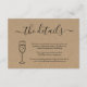 Cartão de detalhes de informações sobre champanhe