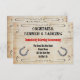 Cartão de recinto temático ocidental, com cavalo galopante e ferradura em fundo vegetativo, com um toque rústico. Ilustração desenhada à mão por McBooboo. Para fazer mais mudanças, vá para Personalizar este modelo. Na parte inferior você verá "Quer personalizar este design ainda mais? Clique em EDIT usando a ferramenta Design. A partir daí você pode mudar algumas fontes e algumas cores, mover coisas ou excluir o que você precisa.