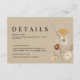 Cartão de Visita de Pormenores de Casamento de Boho de Flores-Florais, caracterizado por estilo boho com trabalho de arte floral e cores bege.