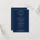 Adicione todos os seus detalhes especiais a este belo cartão de informação que contém um fundo azul real com texto branco com design de amonograma no topo para manter o conjunto engasgado.