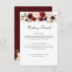Um belo cartão de detalhes florais de boho com flores de burgundy e de aquarela. Esta modelo é para informações de casamento, como acomodação, instruções e outros detalhes que você pode querer que seus hóspedes saibam.
