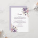Compartilhe todas as informações essenciais para o seu grande dia com este cartão de Boho Mauve e Lilac Floral. Com um buquê romântico de florais de aquarela em mauve mole e matizes lilases, este cartão complementa perfeitamente a sua suíte de casamento. A tipografia boho-chic da ameixa escura adiciona um contraste na moda, juntando encanto rústico e elegância moderna. Ideal para casamentos de inverno ou de primavera, este cartão de detalhes é uma bela maneira de informar seus hóspedes sobre acomodações, direções ou quaisquer outras notas especiais. Facilmente personalizado para ajustado de sua celebração única.