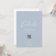 Compartilhe todas as informações importantes do seu casamento com este elegante cartão azul. Apresentando um layout minimalista limpo, um cabeçalho de script branco e um código de QR digitalizável, é a maneira perfeita de guiar os convidados ao seu site para acomodações, agendamentos, direções e muito mais. Um eterno e na moda para a sua suíte de casamento.