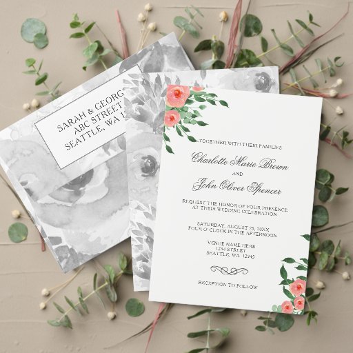Greenery peach Flowers Wedding Invitation SetCriado por Maria G