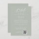 Este cartão elegante de casamento verde de sábio é perfeito para um casamento simples. A design moderna minimalista apresenta a caligrafia verde-pastel eterno e romântica com estilo de conto de fadas boêmico. Personalize o seu cartão de detalhes do convite de casamento com o endereço do seu site de casamento e o código QR para os convidados poderem facilmente RSVP online.