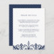 Projetado para coordenar com a nossa coleção de convites para casamento Marraquexe inspirada em Marrocos, este cartão simples e chic contém marinho de letras azuis acentuadas com um intrincado marinho e uma fronteira geométrica branca ao longo da base. Substitua o texto da amostra pelos detalhes chave da sua celebração do casamento. Que informações incluir em um convite de casamento? Considere detalhes como acomodações de hotel, códigos de grupo, transporte, instruções, informações de recepção de boas-vindas e sua URL do site de casamento. Você pode até fazer upload de um mapa para o lado inverso usando a função personalizar. Precisa de ajuda com o texto ou a formatação? Eu adoraria ajudar! Entre em contato com Kristen através do link "pergunte a este designer".