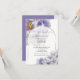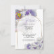 Detalhes do cartão de inserção de casamento - O texto moderno cabe bem dentro desta bela moldura arqueada branca translúcida com bordas de ouro que mostra as flores exóticas roxas de ameixa subjacentes com bordas douradas - obra de arte original © por WhimsicalArtwork™.