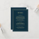 Design de casamento moderno minimalista. Fundo azul profundo. Dourada inscrição (ouro não é ouro real, mas cor). Fontes modernas simplificadas. Simples e elegante. Para casamento outono, casamento no inverno, ou qualquer tipo de casamento elegante moderno.