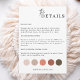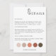 Cartão de Detalhe Traje de Noiva, Cartão de Detalhe Paleta de Cores, Cartão de Inserção Código de Vestimenta do Convidado