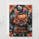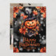 Cartão de Dia das Bruxas com uma lanterna-jack vestindo uma bruxa negra na frente e uma foto na parte de trás. Personalize facilmente este cartão fofo do Dia das Bruxas com sua foto e o nome da família.
